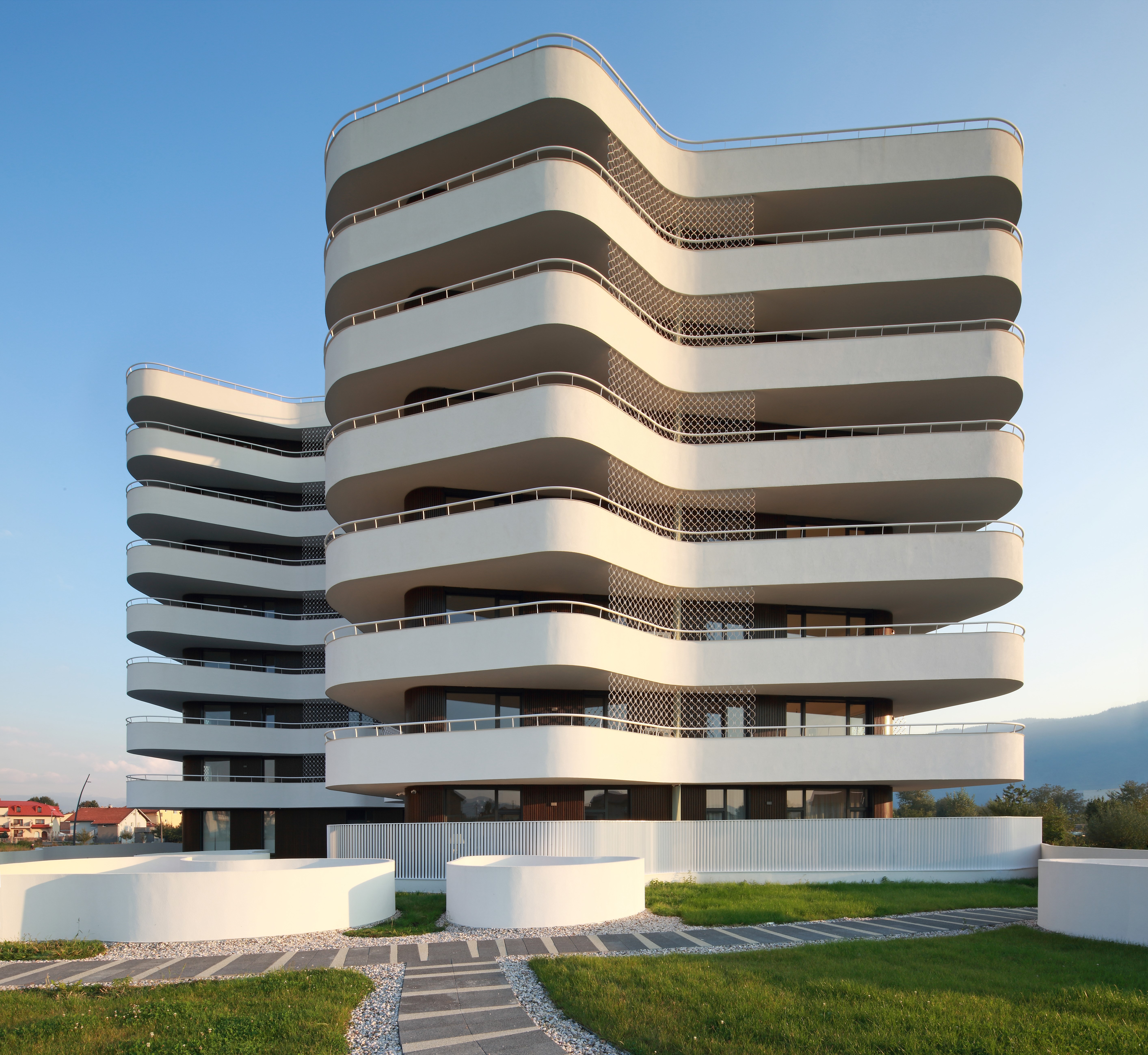 Da bi se proširio unutrašnji prostor stanovanja te povezao sa eksterijerom, dodana je valovaita struktura koja počinje sa prvim spratom. Ovim potezom ne samo sa se definisao ključni element arhitektonskog oblikovanja - val, nego se stambenom prostoru dao poseban i jedinstven vanjski prostor u vidu velikih terasa.
