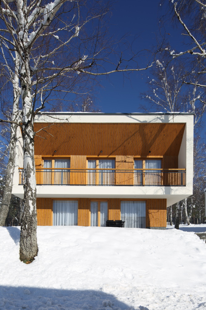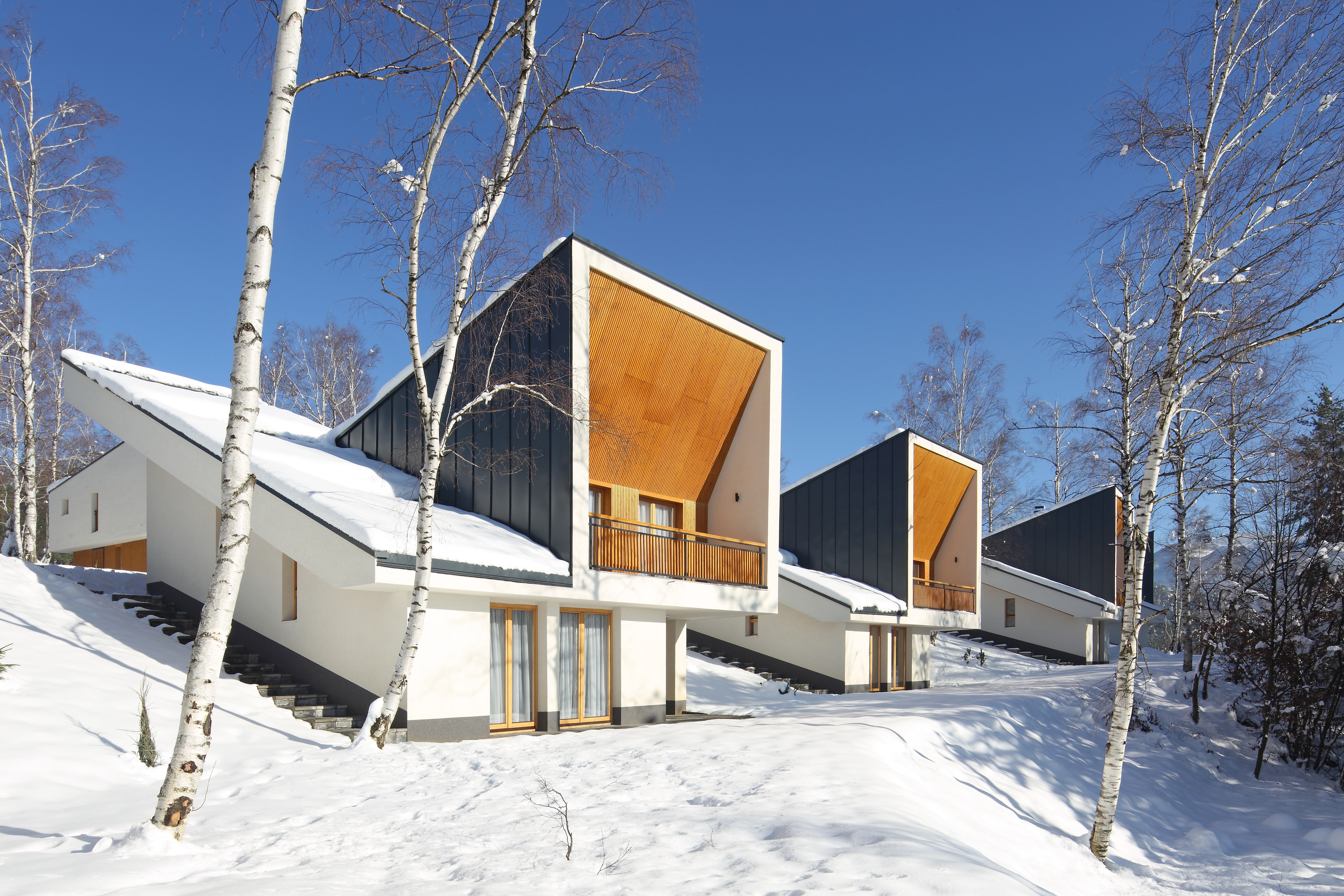 Slično Kući A, i Kuća B ima 3 spavaće sobe i otvoreni dnevni prostor. U ovom slučaju, kuhinja, blagovaonica i dnevni boravak smješteni su u prizemlju, dok se spavaći dio nalazi na gornjem spratu. Cijela kuća ima velike otvore okrenute prema planinama, s terasom i balkonom kao produžetkom dnevnog prostora, koji se mogu koristiti tokom ljeta.